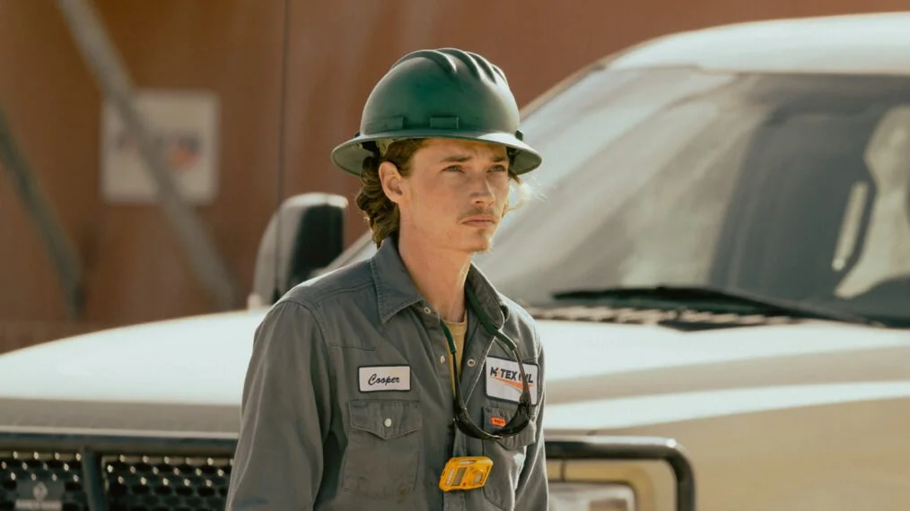 The junior man on a crew is called The Worm (played earnestly by Jacob Lofland). Straight away they send him on a pointless errand up a Derrick. He wears a harness but when he slips and falls (inevitably) his rescuer does not wear one (no time?). This rite of passage treatment of young workers has largely gone from more safety conscious industry and I would be surprised if it continued even offshore these days. But then I’ve never been to The Patch.